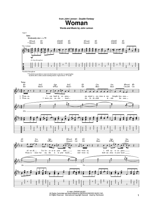 Digital Sheet Music for Woman by John Lennon scored for Guitar Tab; id:388280