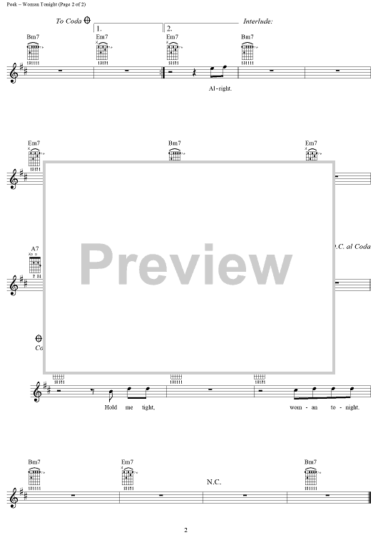 Digital Sheet Music for Woman Tonight by America, Dan Peek scored for Easy Guitar/Vocal; id:288453
