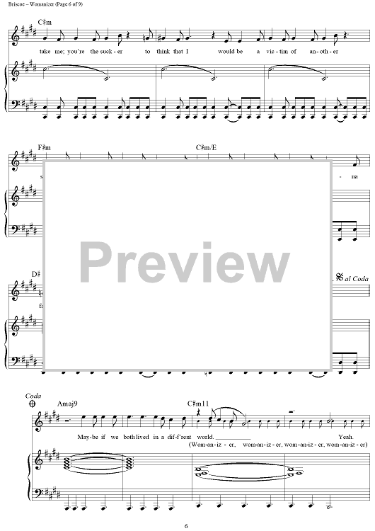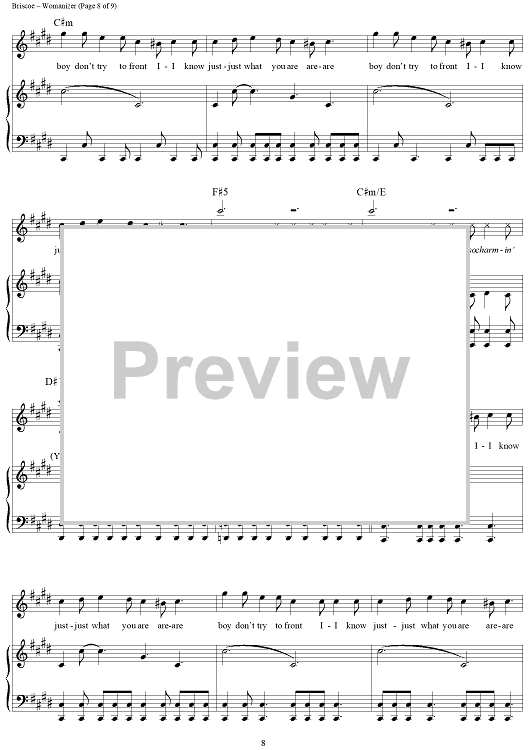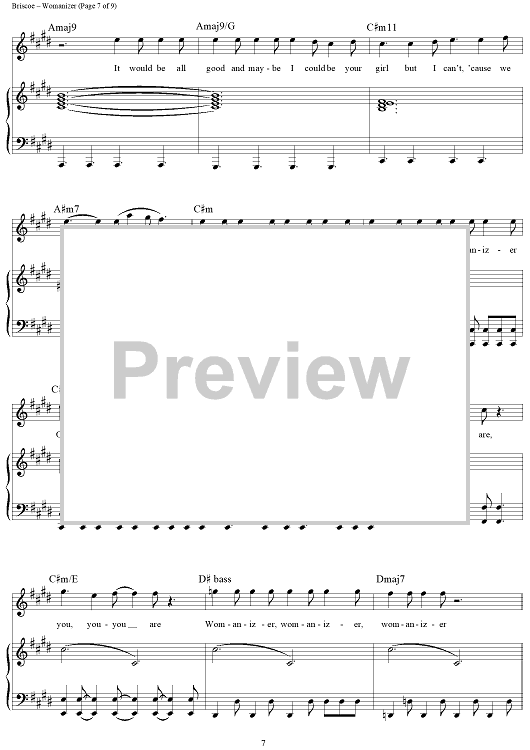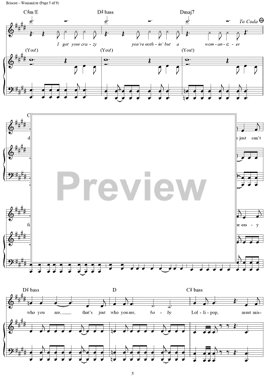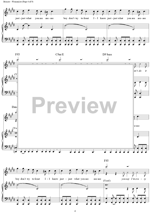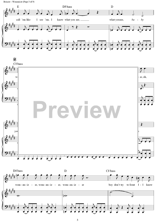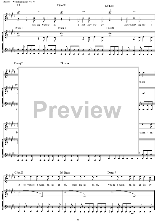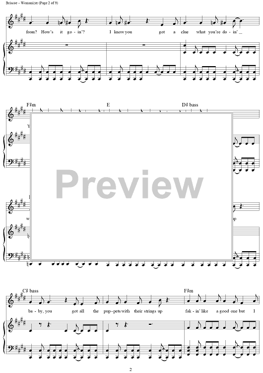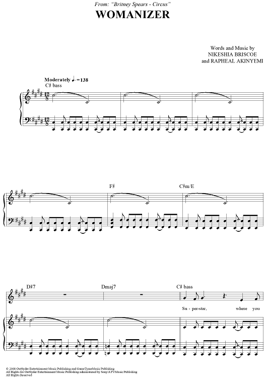 Digital Sheet Music for Womanizer by Nikeshia Briscoe, Britney Spears scored for Piano/Vocal/Chords; id:409903