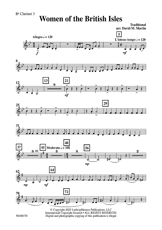 Digital Sheet Music for Women of the British Isles - Bb Clarinet 3 by David M. Martin, Traditional scored for Concert Band; id:509424