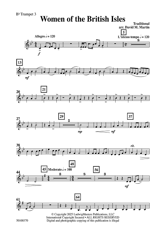 Digital Sheet Music for Women of the British Isles - Bb Trumpet 3 by David M. Martin, Traditional scored for Concert Band; id:509432
