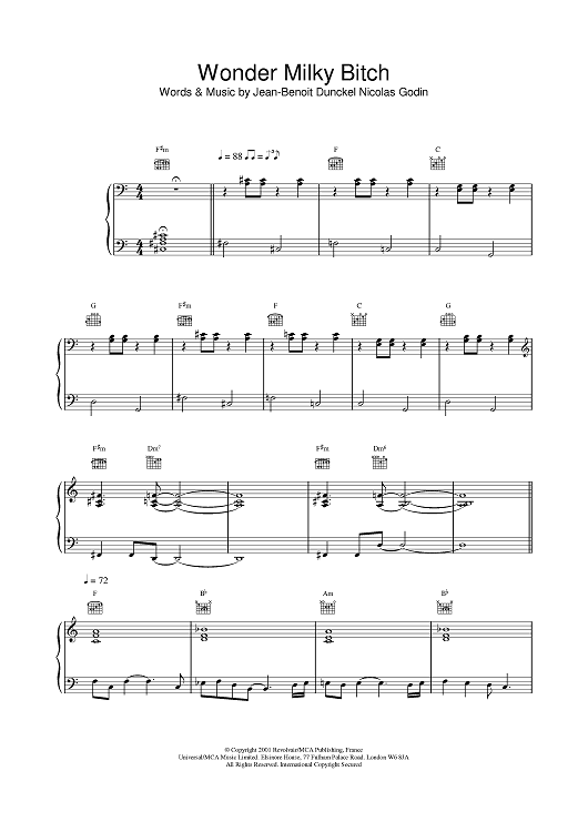 Digital Sheet Music for Wonder Milky Bitch by Air, Jean-Benoit Dunckel, Nicolas Godin scored for Piano/Vocal/Chords; id:380115