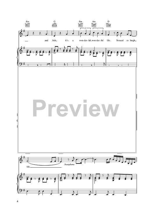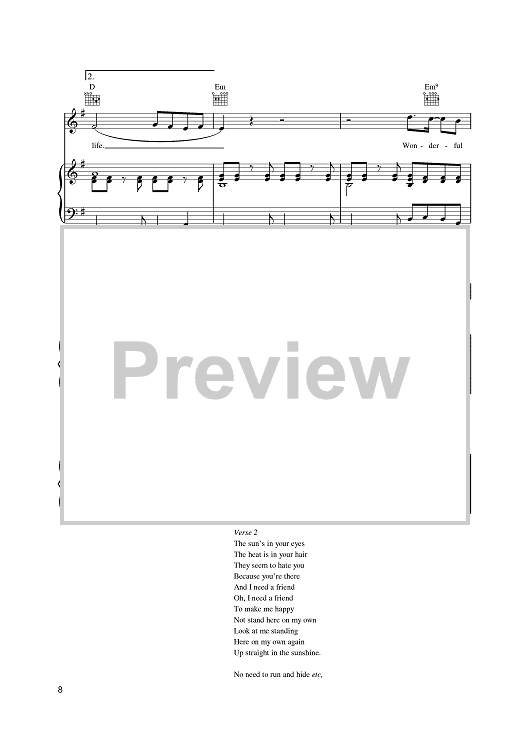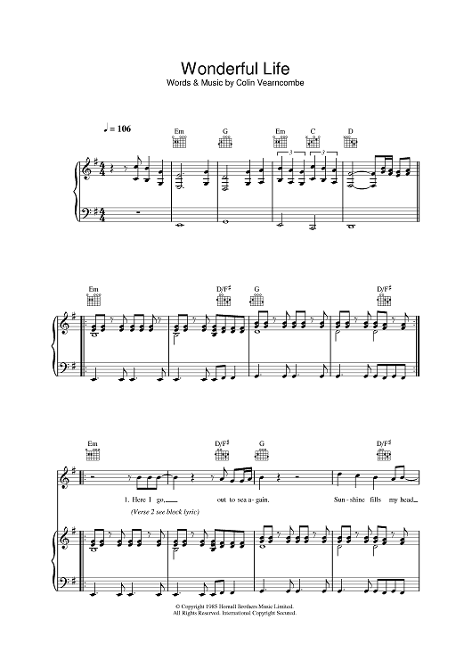 Digital Sheet Music for Wonderful Life by Black, Colin Vearncombe scored for Piano/Vocal/Chords; id:390926