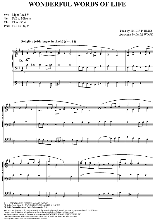Digital Sheet Music for Wonderful Words of Life by Philip P. Bliss, Dale Wood scored for Organ Solo; id:274776