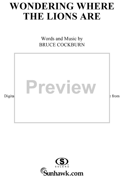 "Wondering Where the Lions Are" Sheet Music by Bruce Cockburn