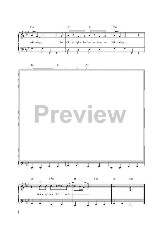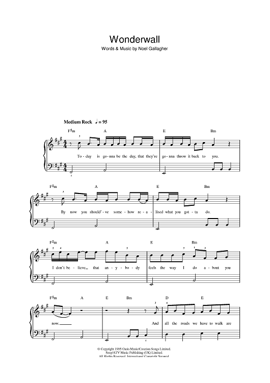 Digital Sheet Music for Wonderwall by Noel Gallagher, Oasis scored for Piano/Vocal/Chords; id:393489