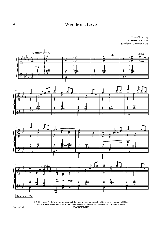 Digital Sheet Music for Wondrous Love by Larry Shackley, Southern Harmony scored for Piano Solo; id:433786