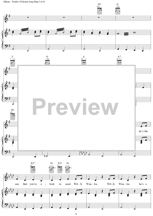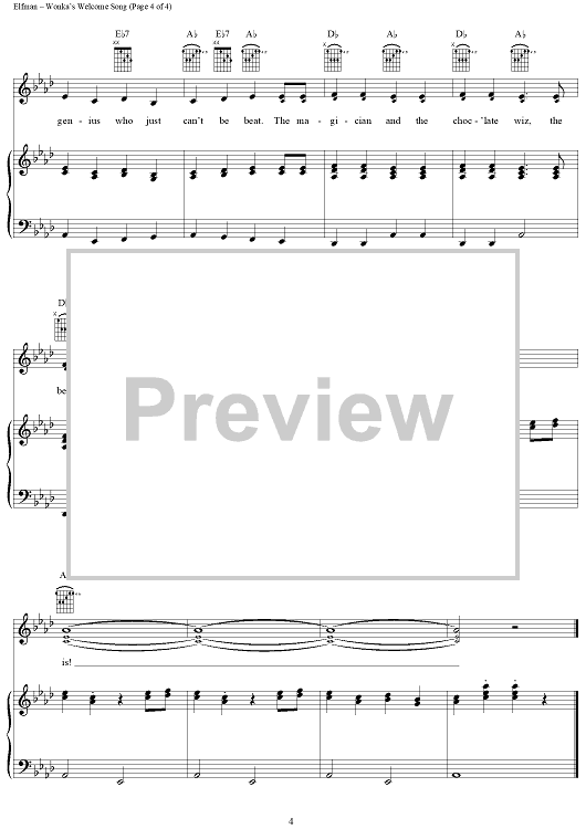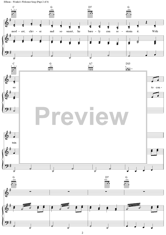 Digital Sheet Music for Wonka's Welcome Song by Danny Elfman, John August scored for Piano/Vocal/Chords; id:314697