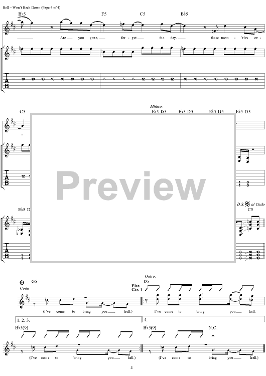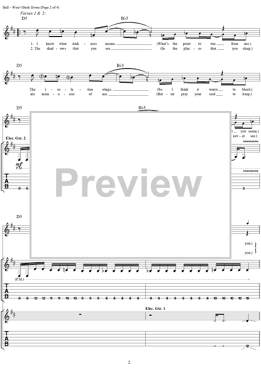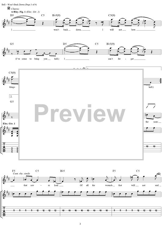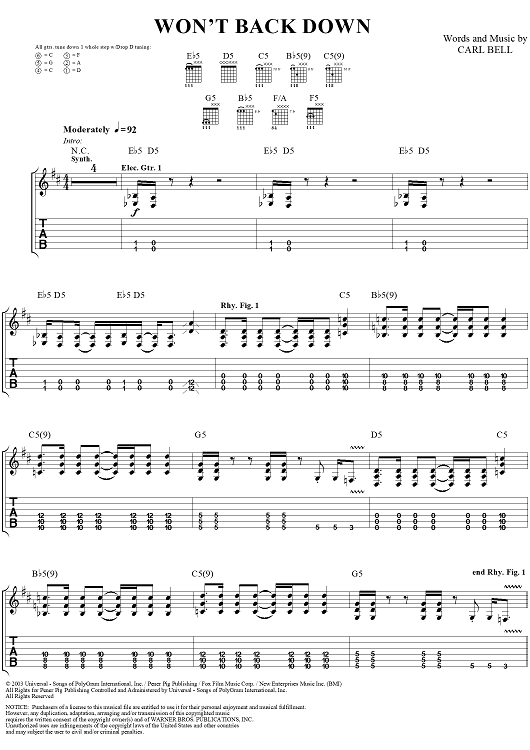 Digital Sheet Music for Won't Back Down by Fuel, Carl Bell scored for Guitar Tab/Vocal; id:295026