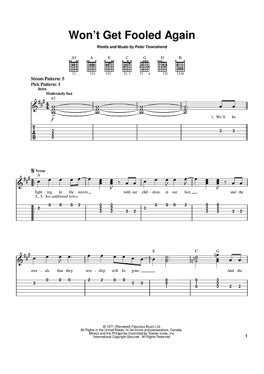 "Won't Get Fooled Again" is a song by the English rock band the Who, written by guitarist and primary songwriter Pete Townshend. It was released as a single in June 1971, reaching the top 10 in the UK, while the full eight-and-a-half-minute version appears as the final track on the band's 1971 album 'Who's Next', released that August. In the US, the single entered Billboard on 17 July, reaching No. 15.