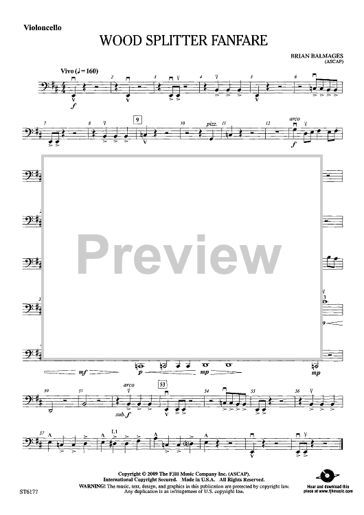 "Wood Splitter Fanfare - Violoncello" Sheet Music by Brian Balmages