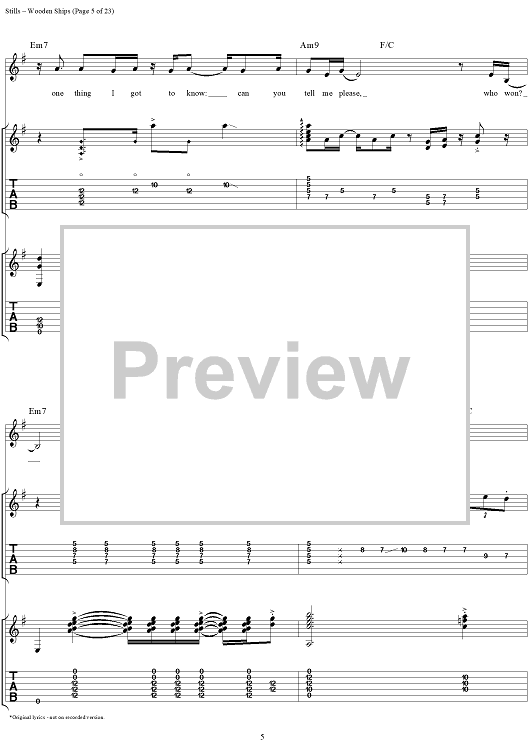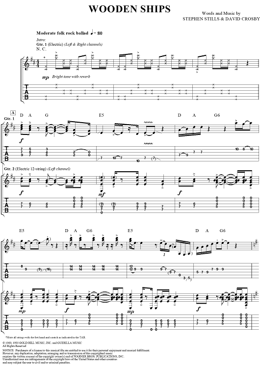 "Wooden Ships" Sheet Music by Crosby, Stills & Nash