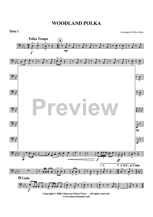 Digital Sheet Music for Woodland Polka - Tuba 1 by Ray Grim scored for Tuba Quartet; id:357331