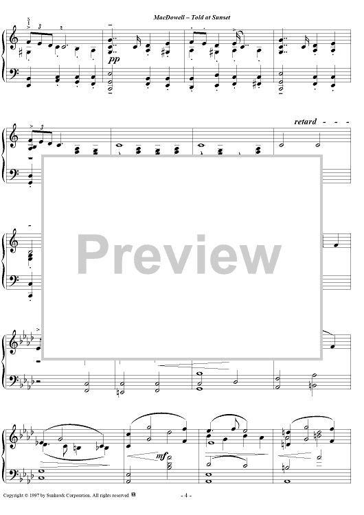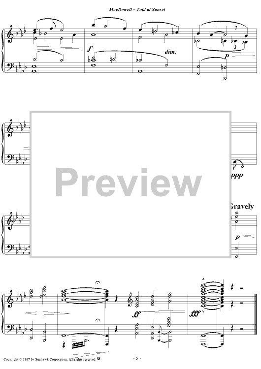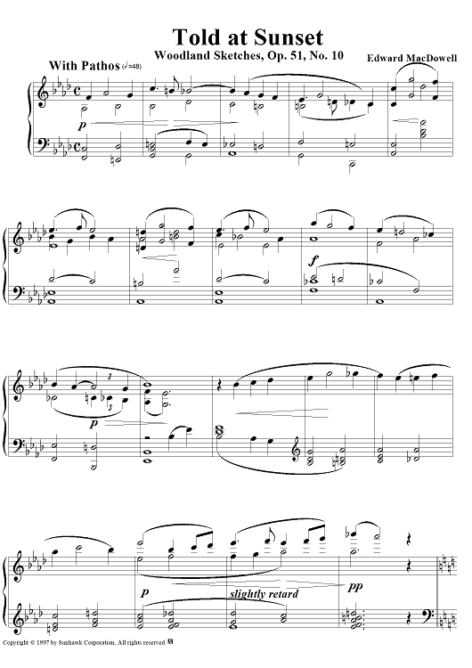 Digital Sheet Music for Woodland Sketches, no. 10: Told at Sunset by Edward MacDowell scored for Piano Solo; id:94717