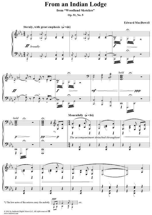 Digital Sheet Music for Woodland Sketches, no. 5: From an Indian Lodge-Op. 51 by Edward MacDowell scored for Piano Solo; id:266738