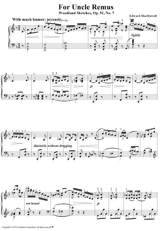 Digital Sheet Music for Woodland Sketches, no. 7: For Uncle Remus by Edward MacDowell scored for Piano Solo; id:94716