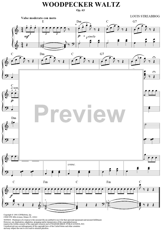 Digital Sheet Music for Woodpecker Waltz by Louis Streabbog scored for Piano Solo; id:236390