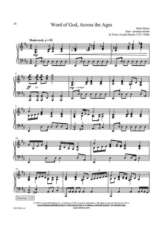 Digital Sheet Music for Word of God, Across the Ages by Franz Joseph Haydn, Mark Hayes scored for Piano Solo; id:433927