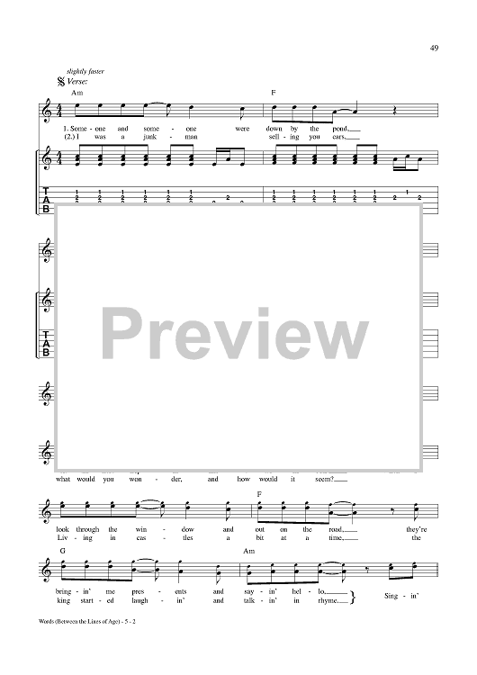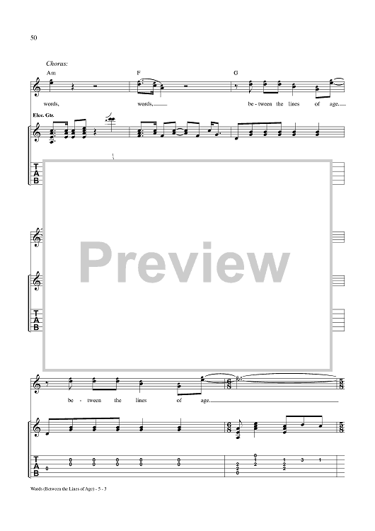 Digital Sheet Music for Words (Between the Lines of Age) by Neil Young scored for Guitar Tab/Vocal; id:359898
