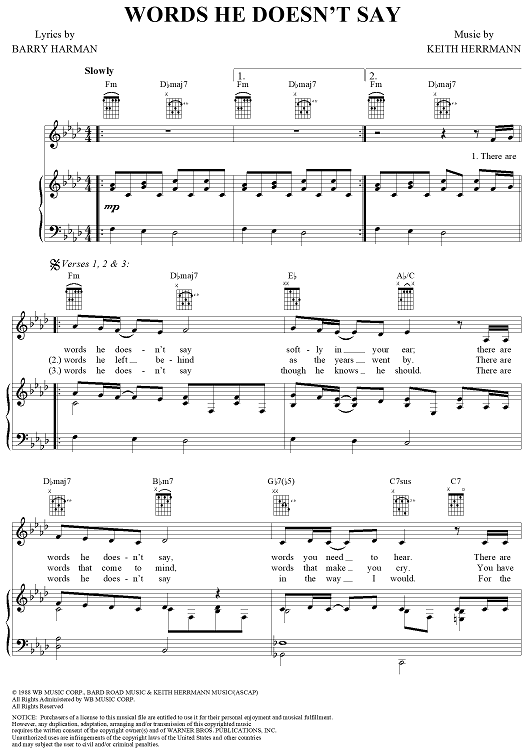Digital Sheet Music for Words He Doesn't Say by Keith Herrmann, Barry Harman scored for Piano/Vocal/Chords; id:313273