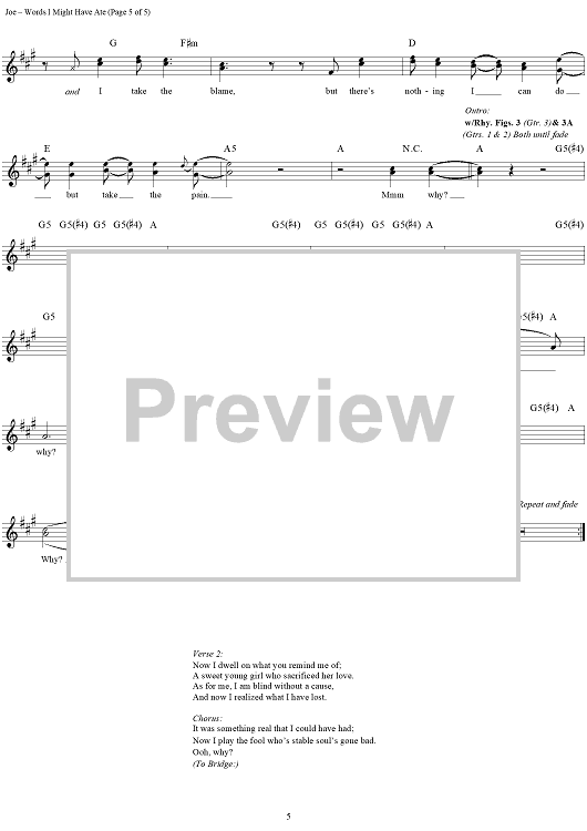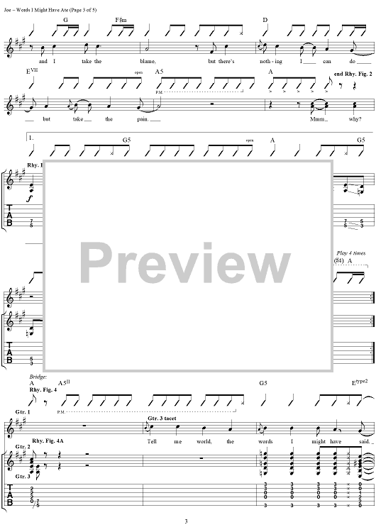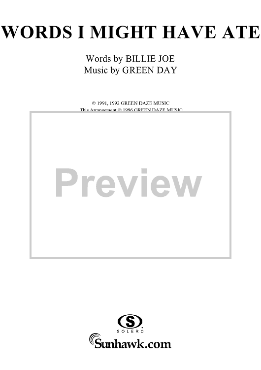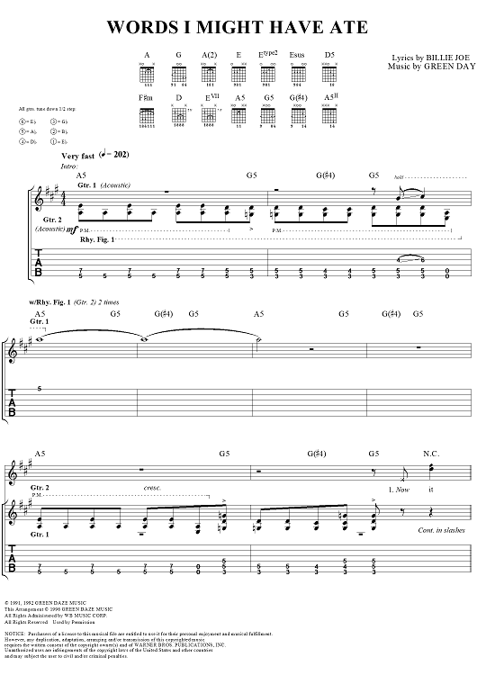 Digital Sheet Music for Words I Might Have Ate by Billie Joe Armstrong, Green Day scored for Guitar Tab/Vocal; id:113576