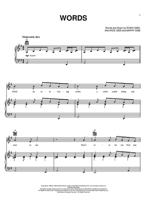 Digital Sheet Music for Words by Bee Gees, Maurice Gibb, Barry Gibb, Robin Gibb scored for Piano/Vocal/Chords; id:369371