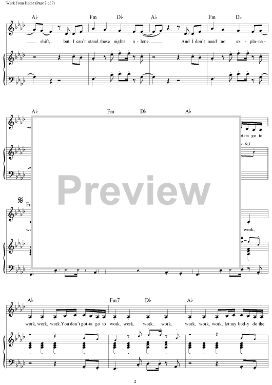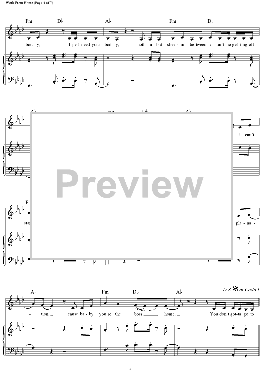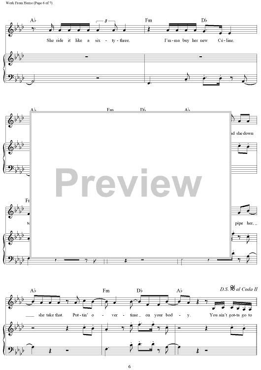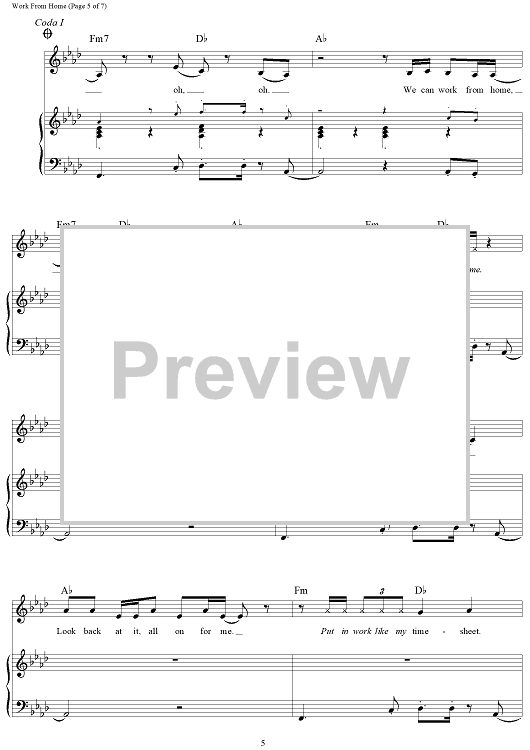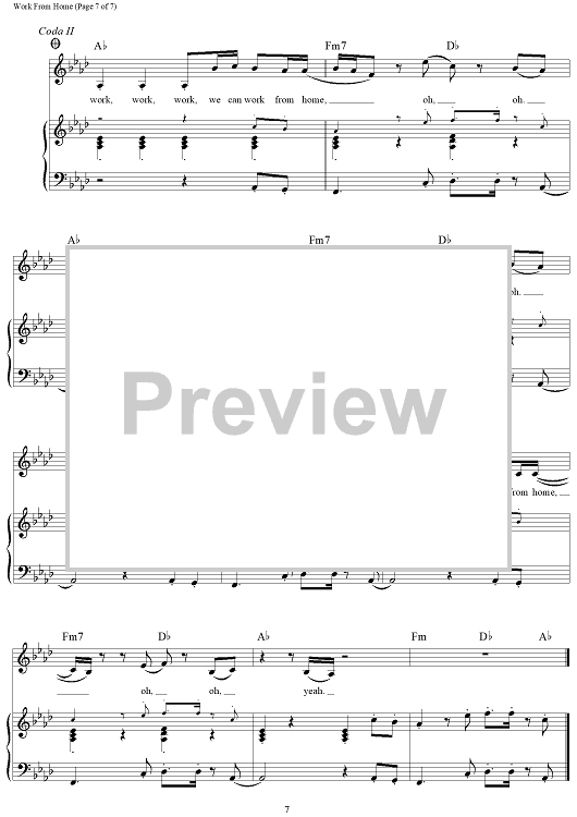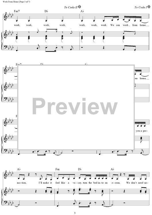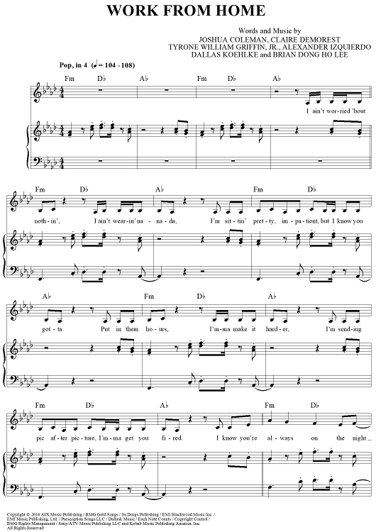 Digital Sheet Music for Work From Home by Ammo, Fifth Harmony, Claire Demorest, Tyrone William Griffin, Jr., Alexander Izquierdo, Dallas Koehlke, Brian Dong Ho Lee scored for Piano/Vocal/Chords; id:457653
