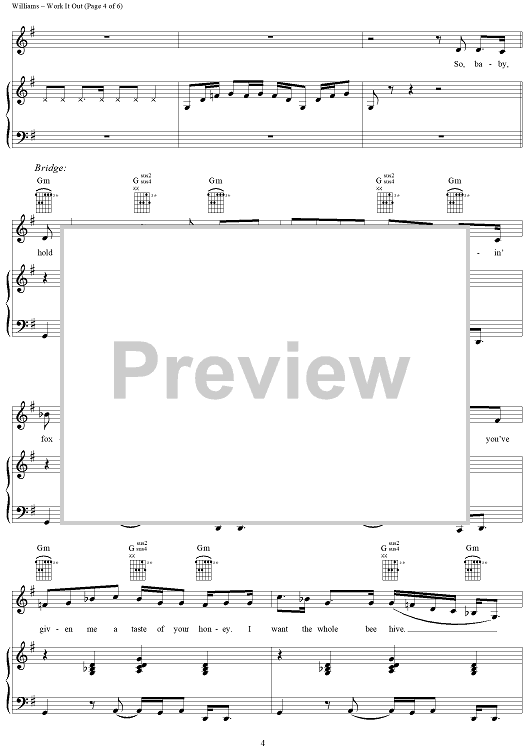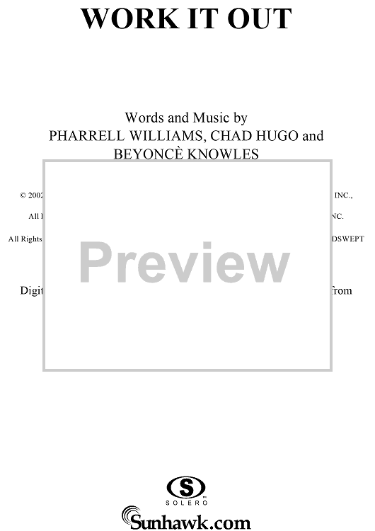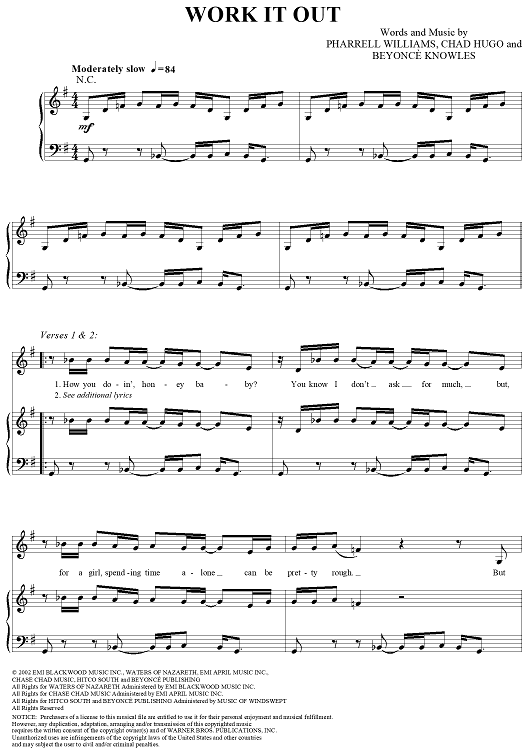 Digital Sheet Music for Work It Out by Beyonce, Chad Hugo, Pharrell Williams scored for Piano/Vocal/Chords; id:292005