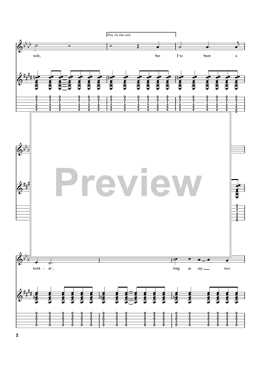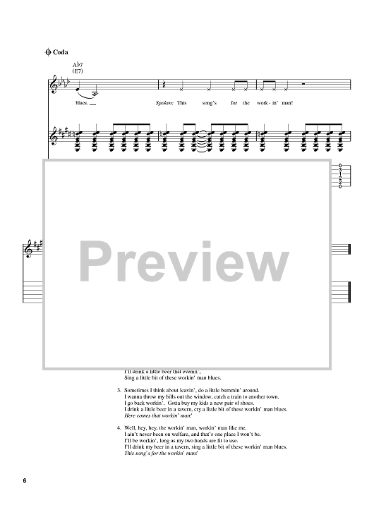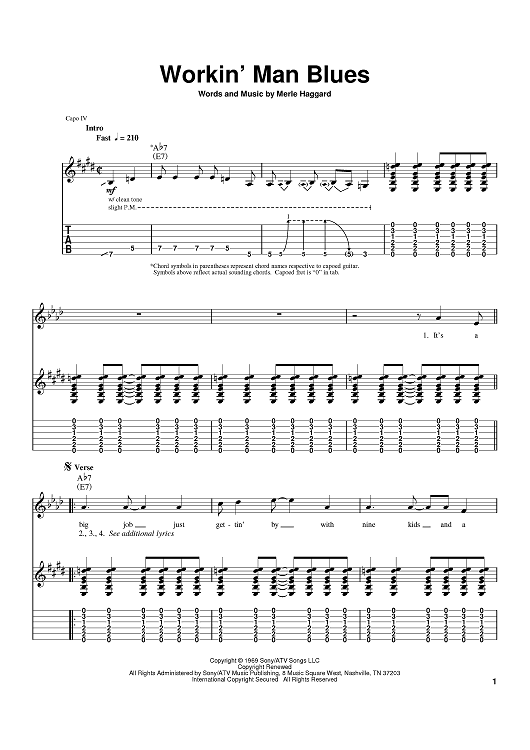 Digital Sheet Music for Workin' Man Blues by Merle Haggard scored for Guitar Tab; id:374286
