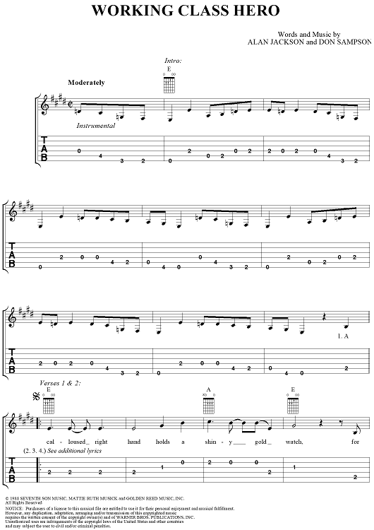 "Working Class Hero" Sheet Music by Al Jackson Jr