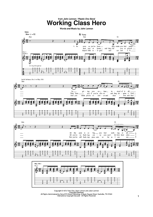 Digital Sheet Music for Working Class Hero by John Lennon scored for Guitar Tab; id:388281