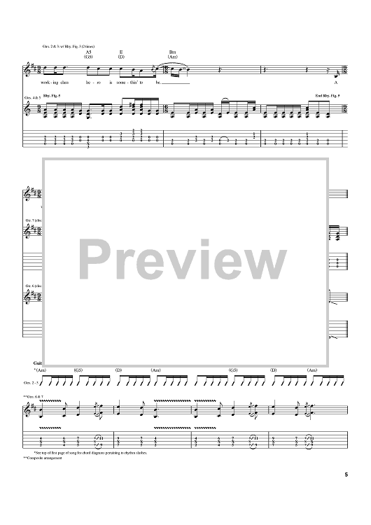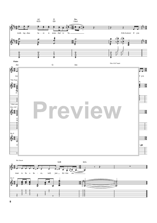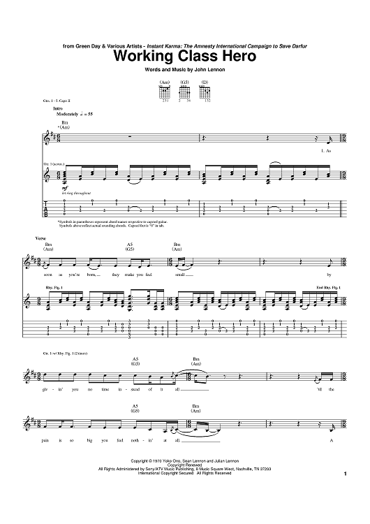 Digital Sheet Music for Working Class Hero by John Lennon, Green Day scored for Guitar Tab; id:397984
