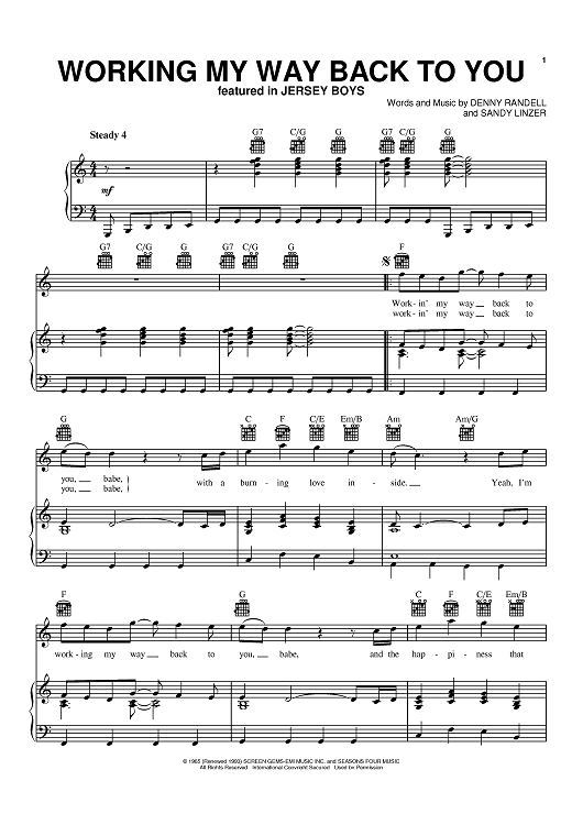 Digital Sheet Music for Working My Way Back To You by Sandy Linzer, Denny Randell, The Spinners, Frankie Valli, The Four Seasons scored for Piano/Vocal/Chords; id:389864