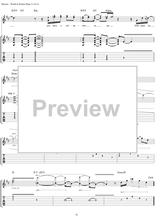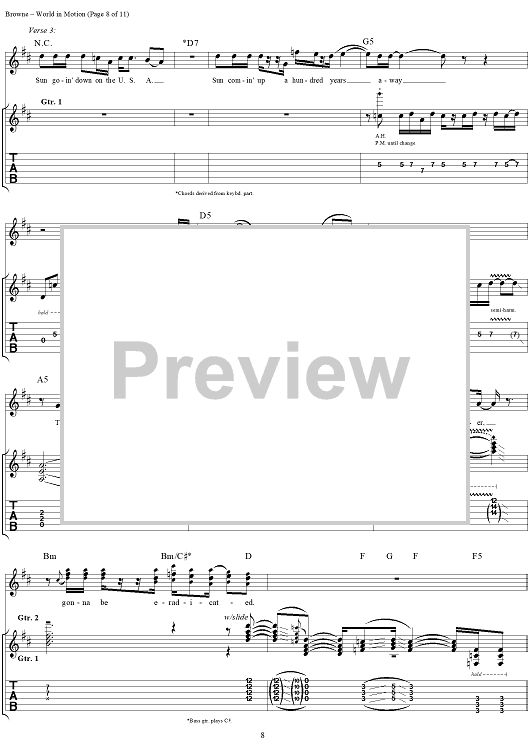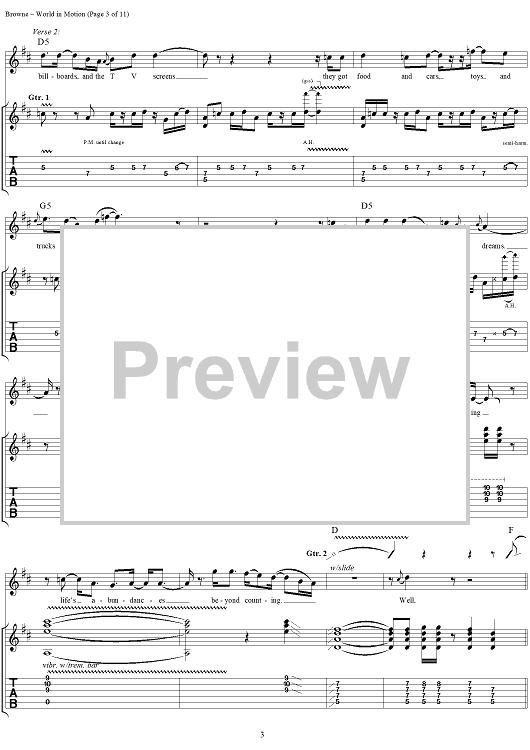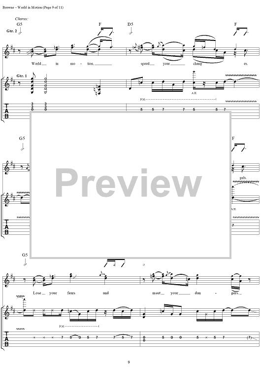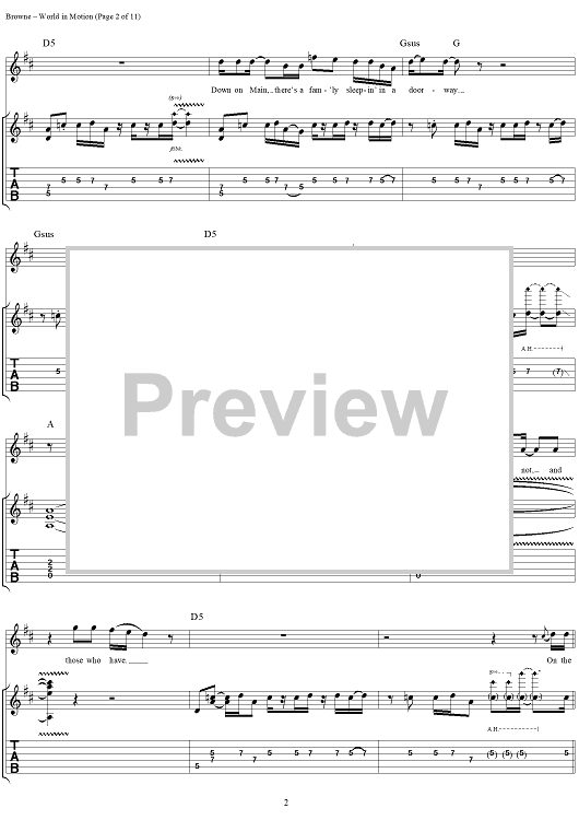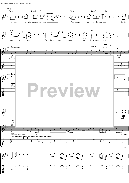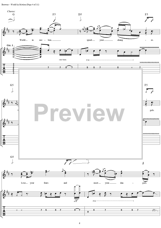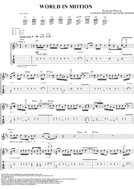 Digital Sheet Music for World in Motion by Jackson Browne, Craig Doerge scored for Guitar Tab/Vocal; id:273794