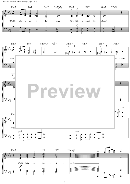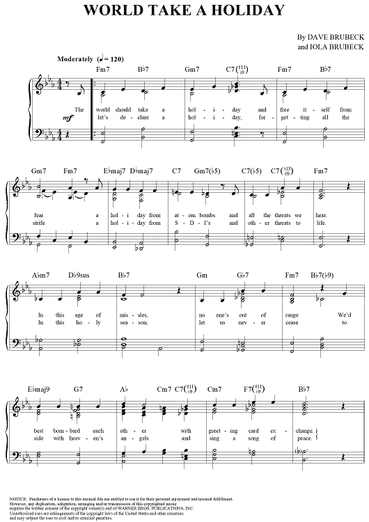 "World Take a Holiday" Sheet Music by Dave Brubeck
