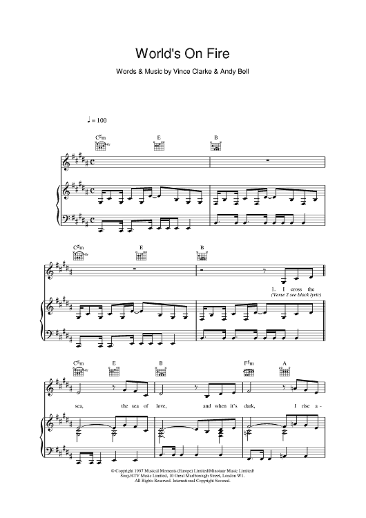 Digital Sheet Music for World's On Fire by Andy Bell, Vince Clarke, Erasure scored for Piano/Vocal/Chords; id:379790
