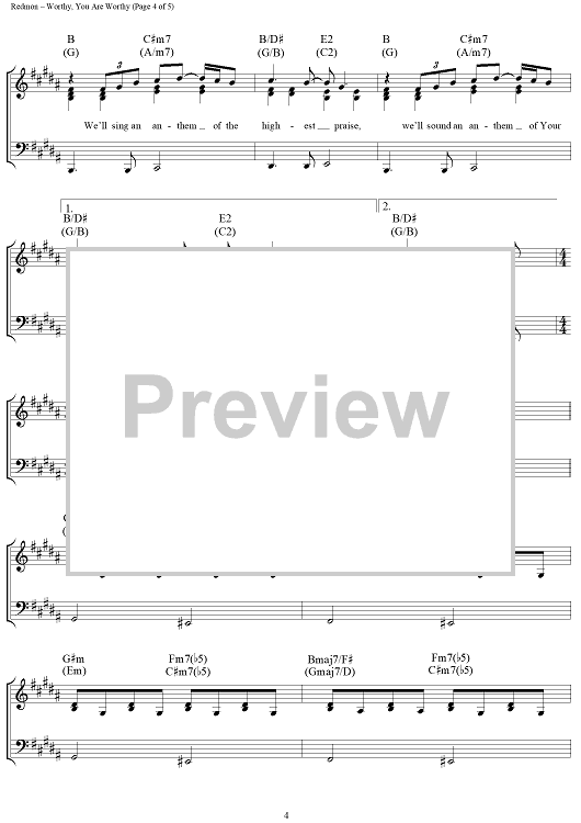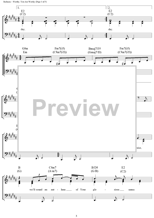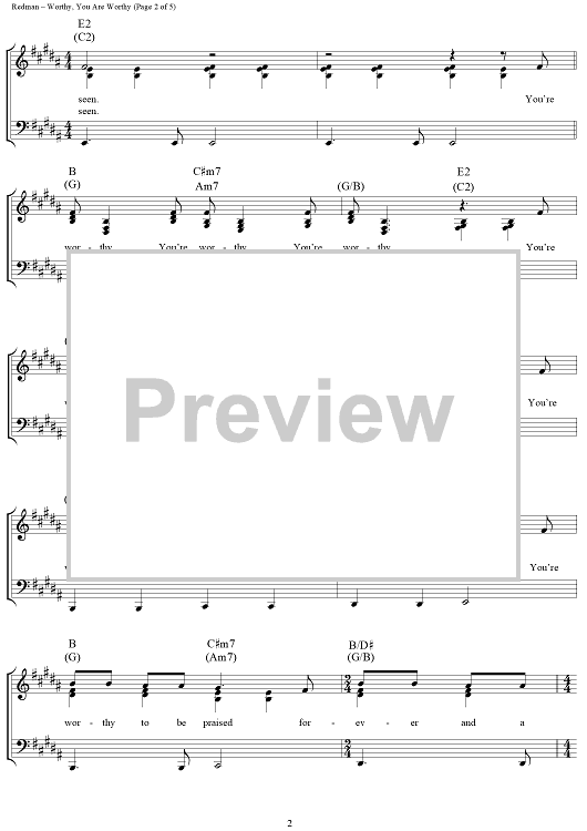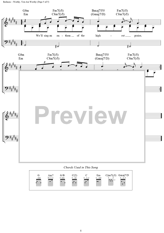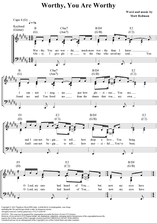 Digital Sheet Music for Worthy, You Are Worthy by Matt Redman scored for Piano/Vocal/Chords; id:360944