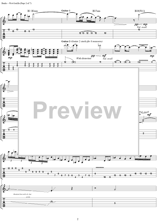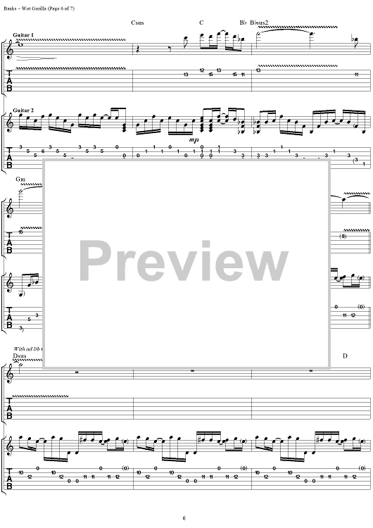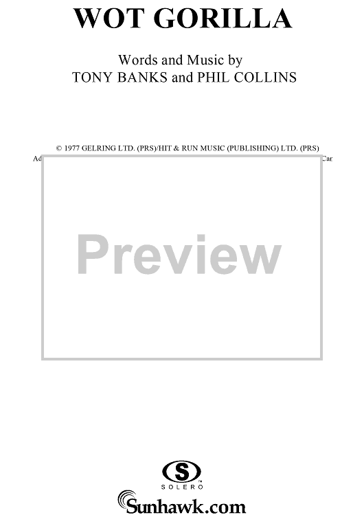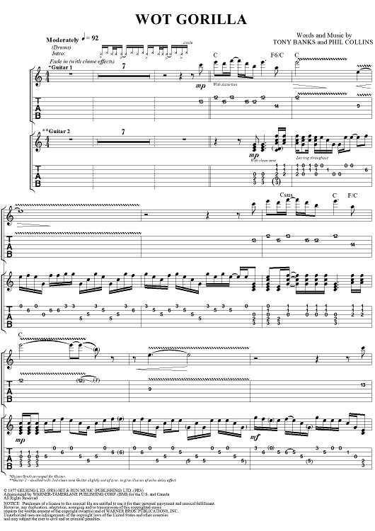 Digital Sheet Music for Wot Gorilla by Genesis, Tony Banks, Phil Collins scored for Guitar Tab/Vocal; id:114019