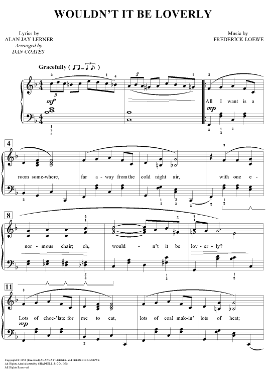 Digital Sheet Music for Wouldn't It Be Loverly by Dan Coates, Frederick Loewe, Alan Jay Lerner scored for Easy Piano/Vocal/Chords; id:450265