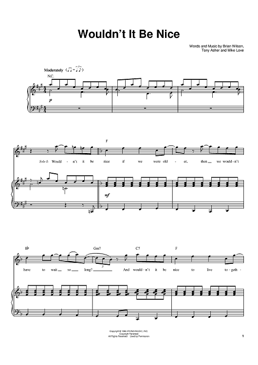 "Wouldn't It Be Nice" Sheet Music by The Beach Boys
