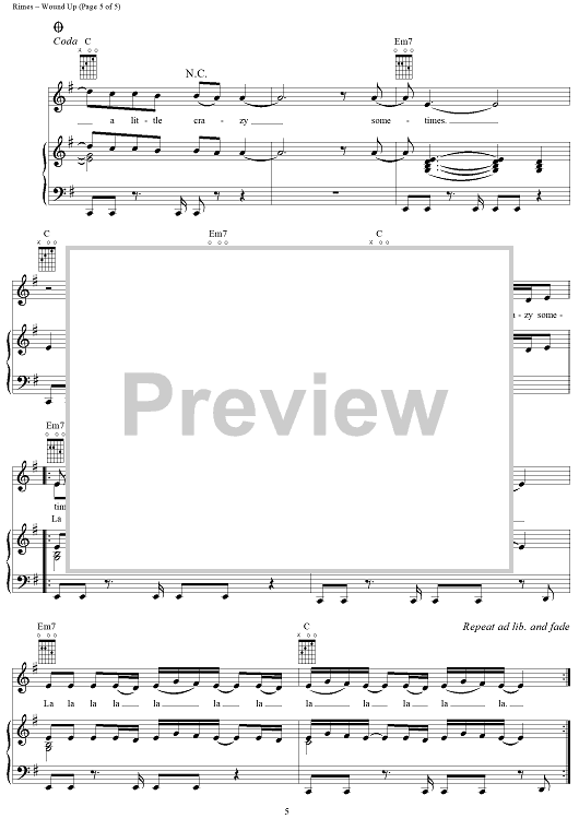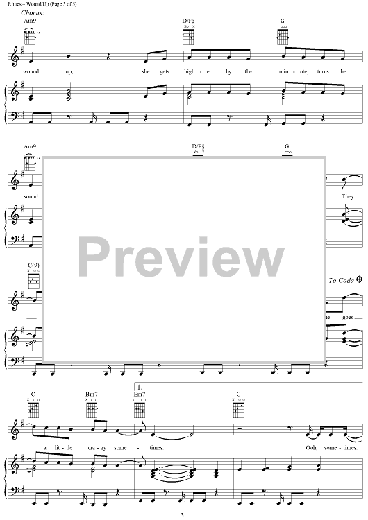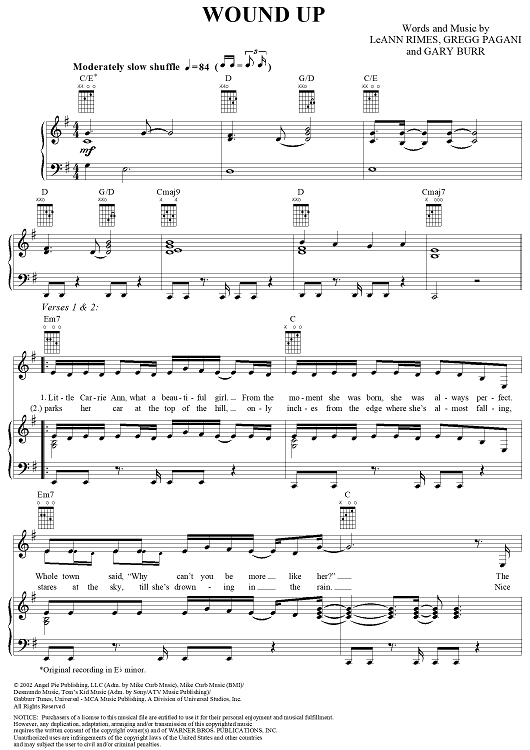 Digital Sheet Music for Wound Up by LeAnn Rimes, Gary Burr, Gregg Pagani scored for Piano/Vocal/Chords; id:294099