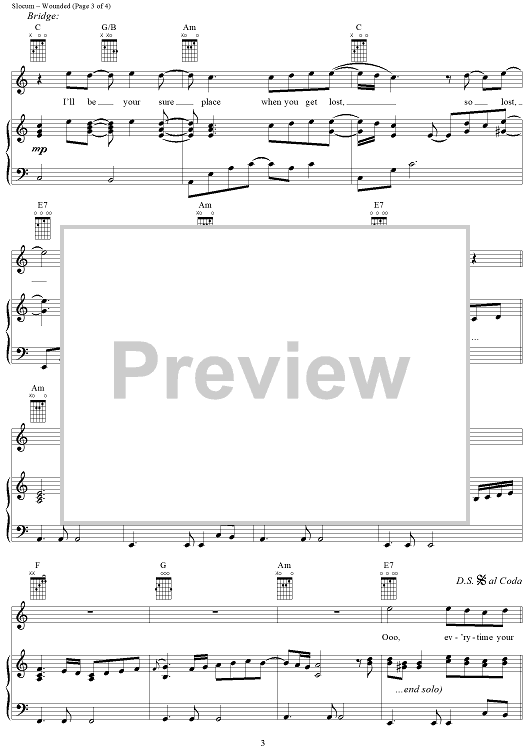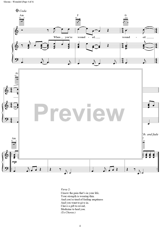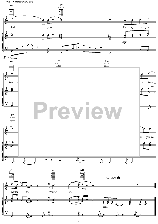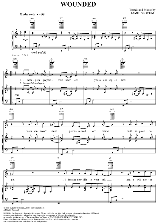 Digital Sheet Music for Wounded by Jamie Slocum scored for Piano/Vocal/Chords; id:236330