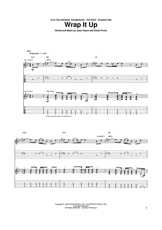 Digital Sheet Music for Wrap It Up by Isaac Hayes, David Porter, Archie Bell, Sam & Dave, The Fabulous Thunderbirds, Jimmie Vaughan scored for Guitar Tab; id:388749