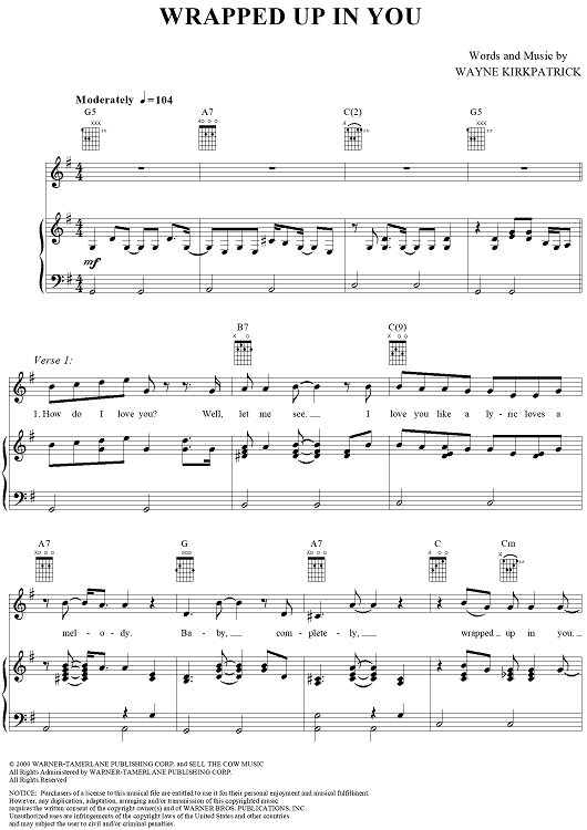 Digital Sheet Music for Wrapped Up in You by Garth Brooks, Wayne Kirkpatrick scored for Piano/Vocal/Chords; id:285105
