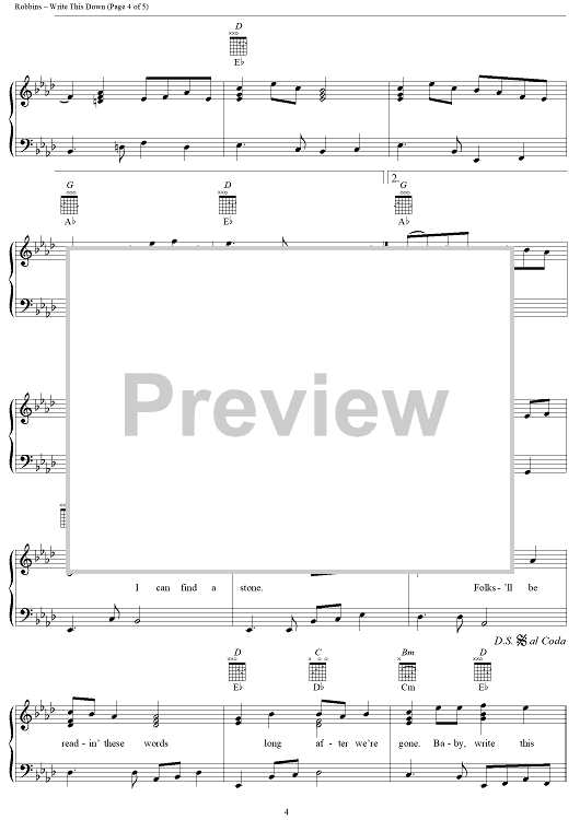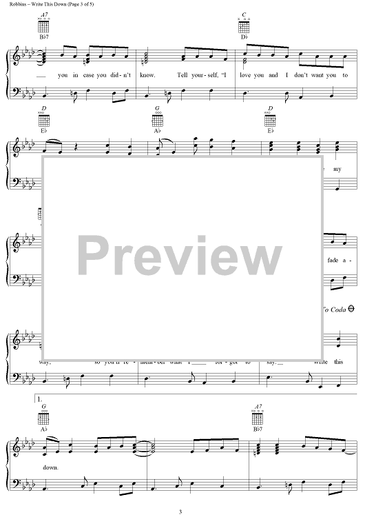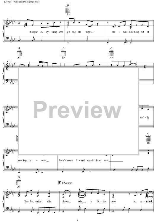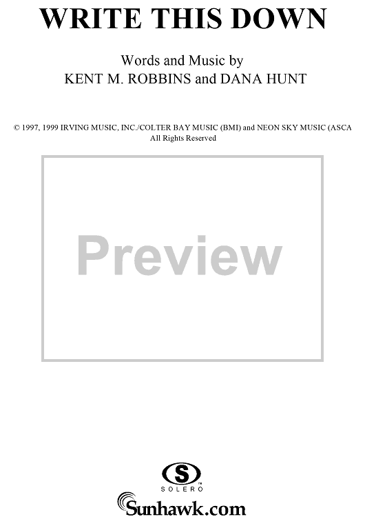 Digital Sheet Music for Write This Down by George Strait, Kent M. Robbins, Dana Hunt scored for Piano/Vocal/Chords; id:114332