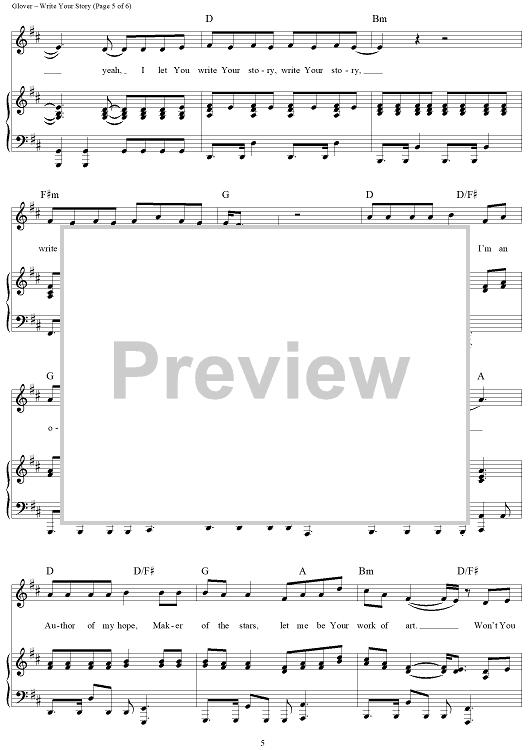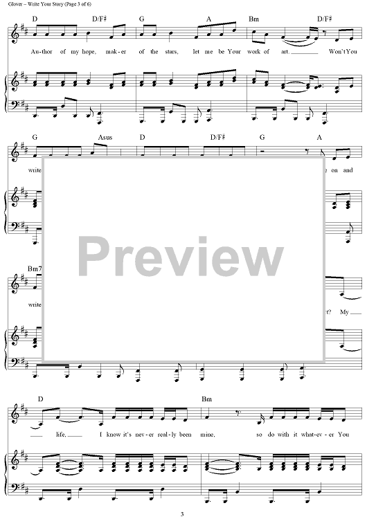 Digital Sheet Music for Write Your Story by Ben Glover, Francesca Battistelli scored for Piano/Vocal/Chords; id:443417