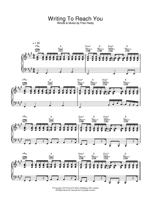 Digital Sheet Music for Writing To Reach You by Travis scored for Piano/Vocal/Chords; id:376987