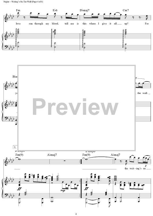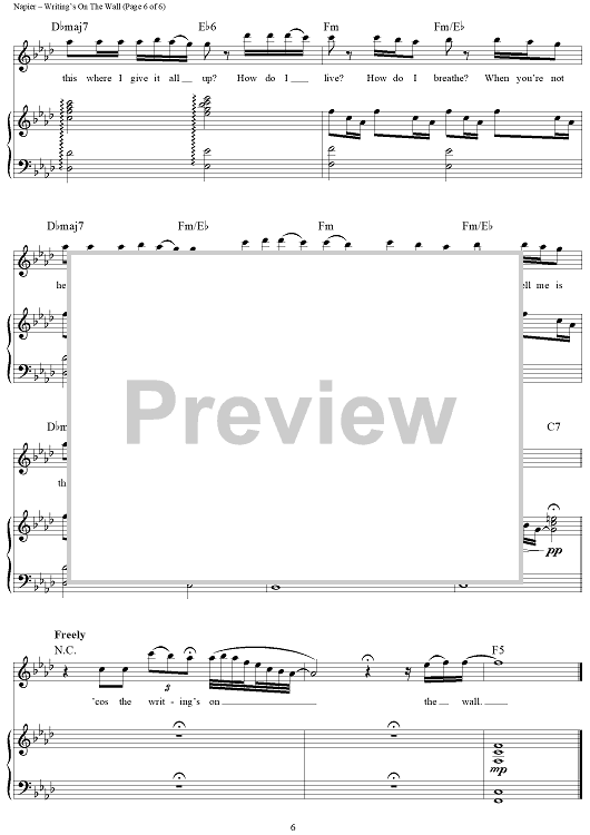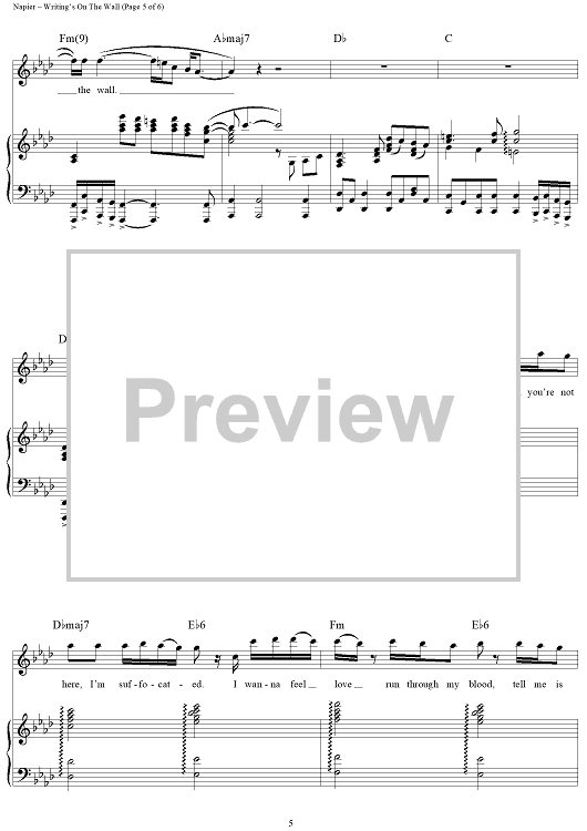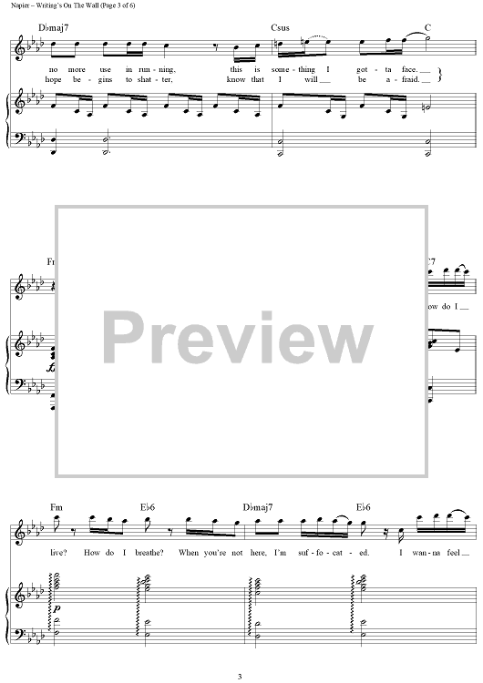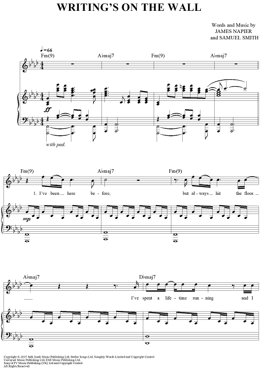 Digital Sheet Music for Writing's On the Wall by Sam Smith, James Napier scored for Piano/Vocal/Chords; id:453975
