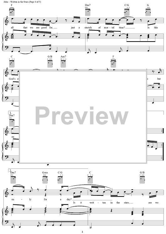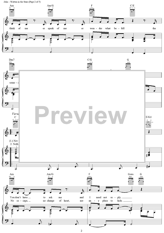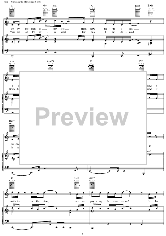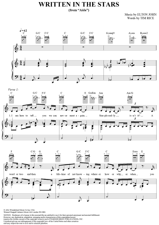Digital Sheet Music for Written in the Stars (From "Aida") by Elton John, Tim Rice scored for Piano/Vocal/Chords; id:297519