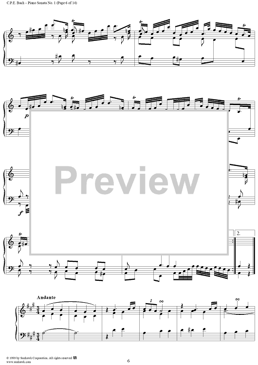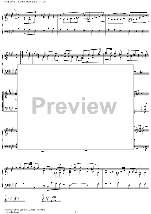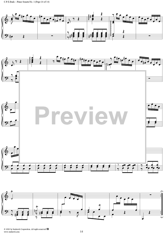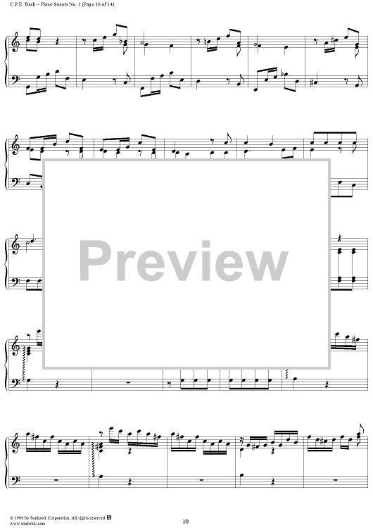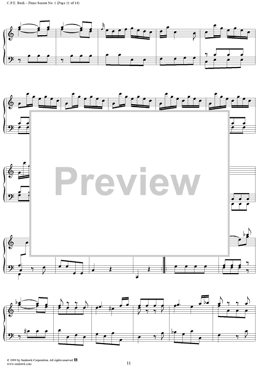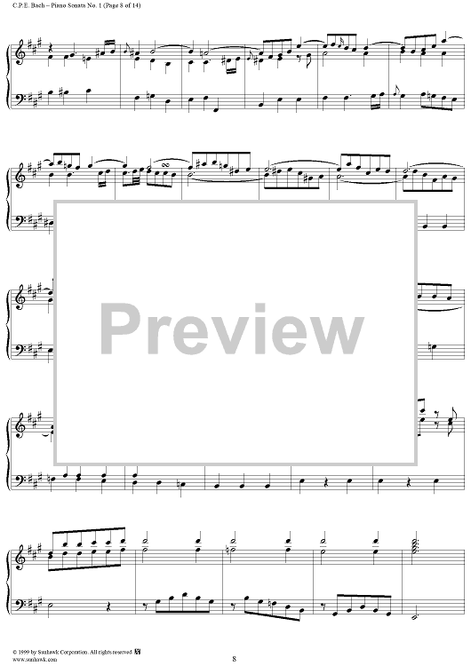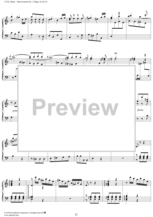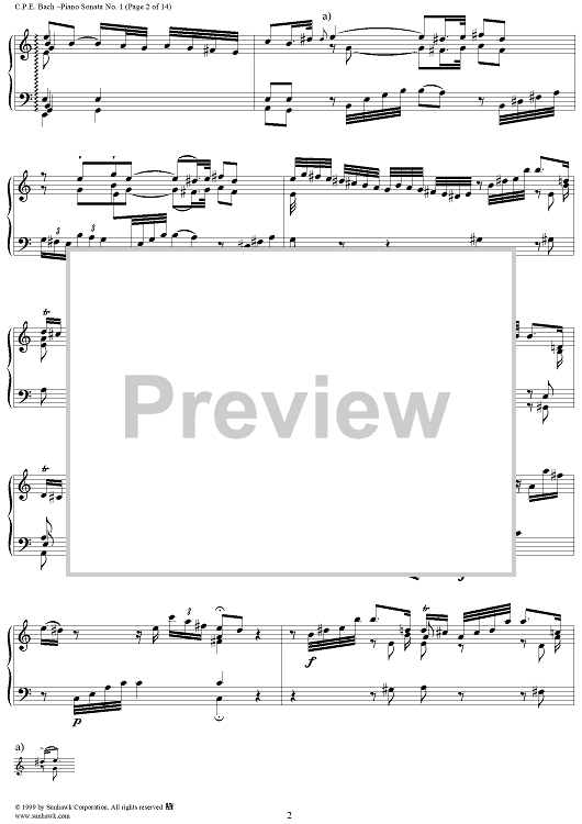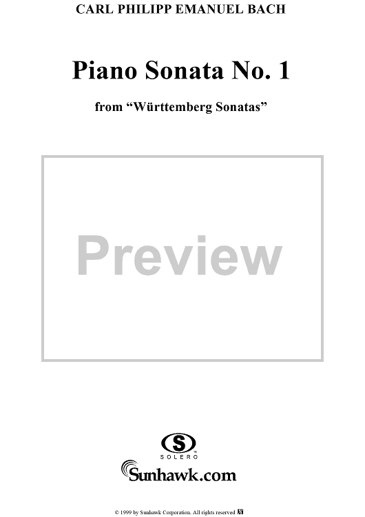 Digital Sheet Music for Wurttemberg Sonatas: Piano Sonata no. 1 in A Minor by Carl Philipp Emanuel Bach scored for Piano Solo; id:139873